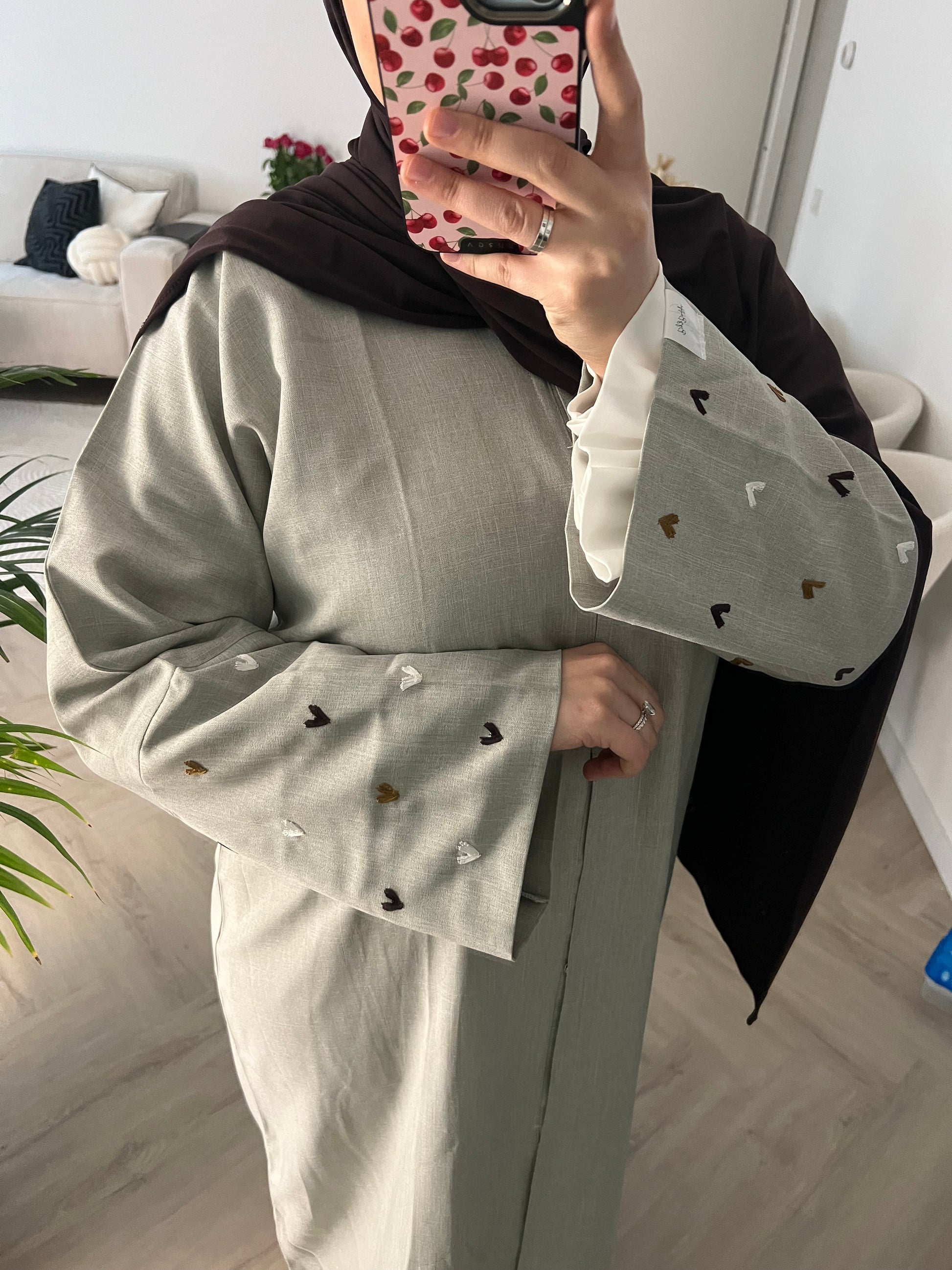 Add a touch of romance to your look with this stylish abaya, featuring charming heart designs in shades of brown on the sleeves. Designed in Dubai, its lightweight fabric ensures all-day comfort while keeping your style effortlessly elegant. Perfect for adding a playful twist to your wardrobe! ❤️