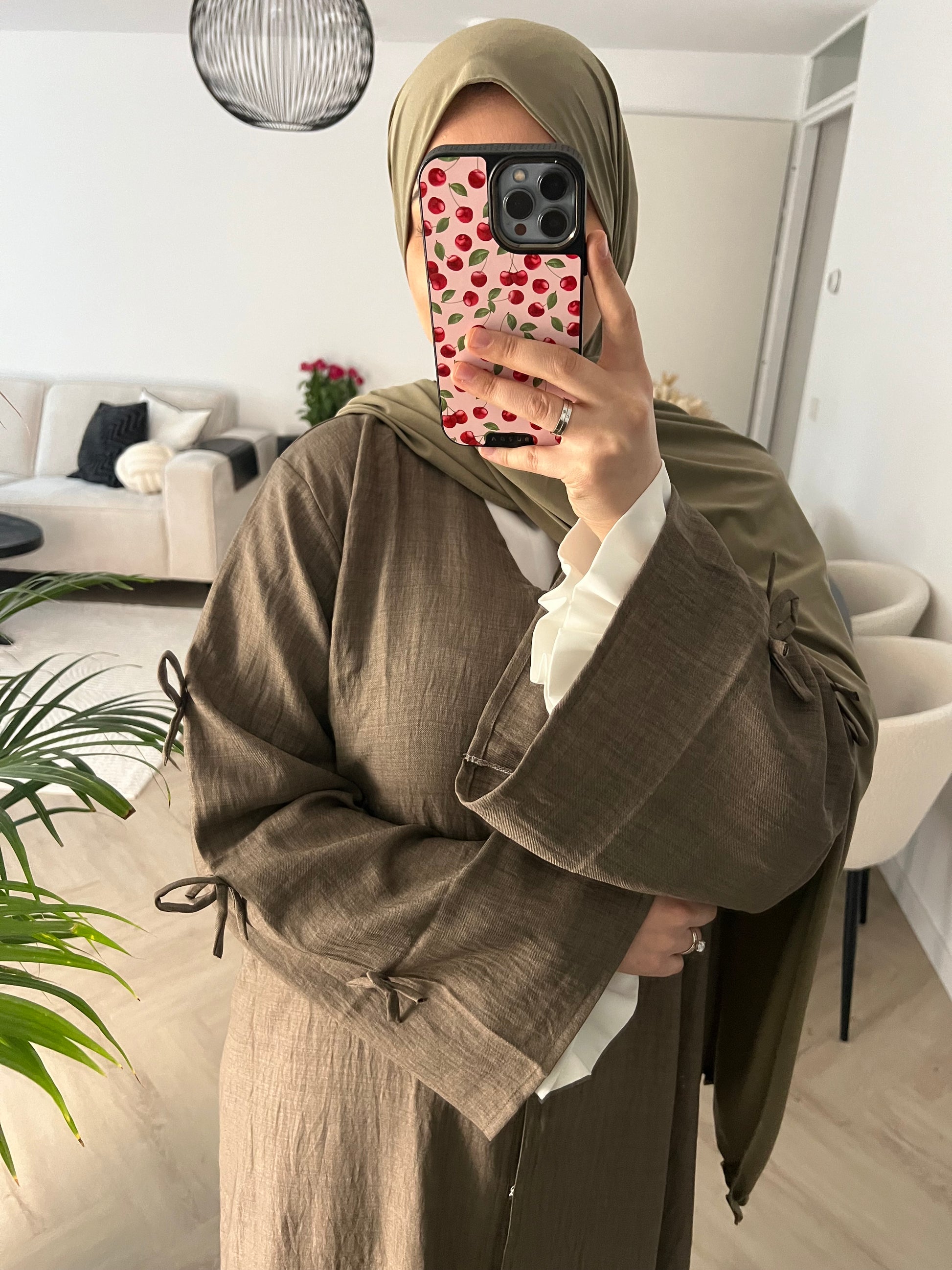 Elevate your wardrobe with this classic abaya, featuring delicate bow accents on the sleeves for a chic and feminine touch. Designed in Dubai and crafted from a lightweight, breathable fabric, it’s perfect for both everyday wear and special occasions. Effortlessly graceful with a hint of charm! 🎀