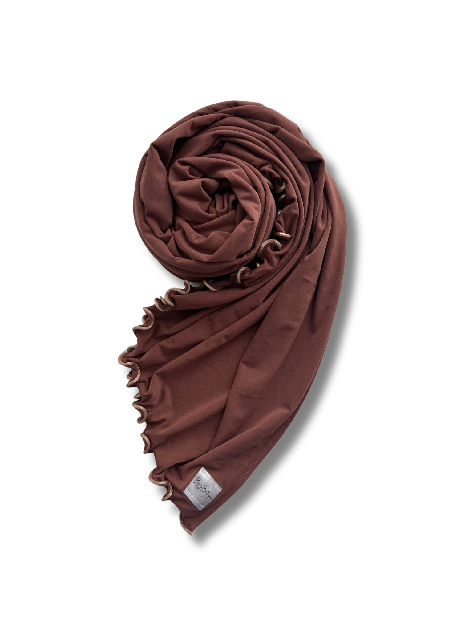 This is the "line" version of our Premium jersey hijab. Meaning the edges contain a wavy satin cord. This makes your daily outfit stand out, making it more chique and appealing to the eye.