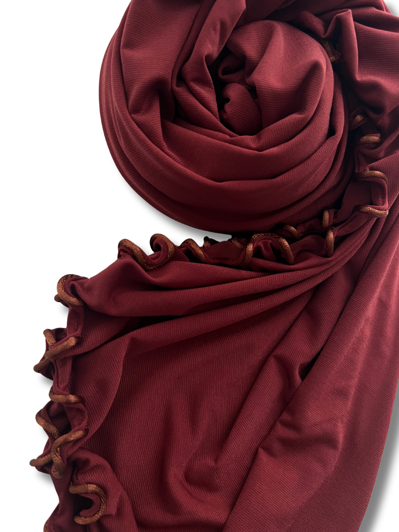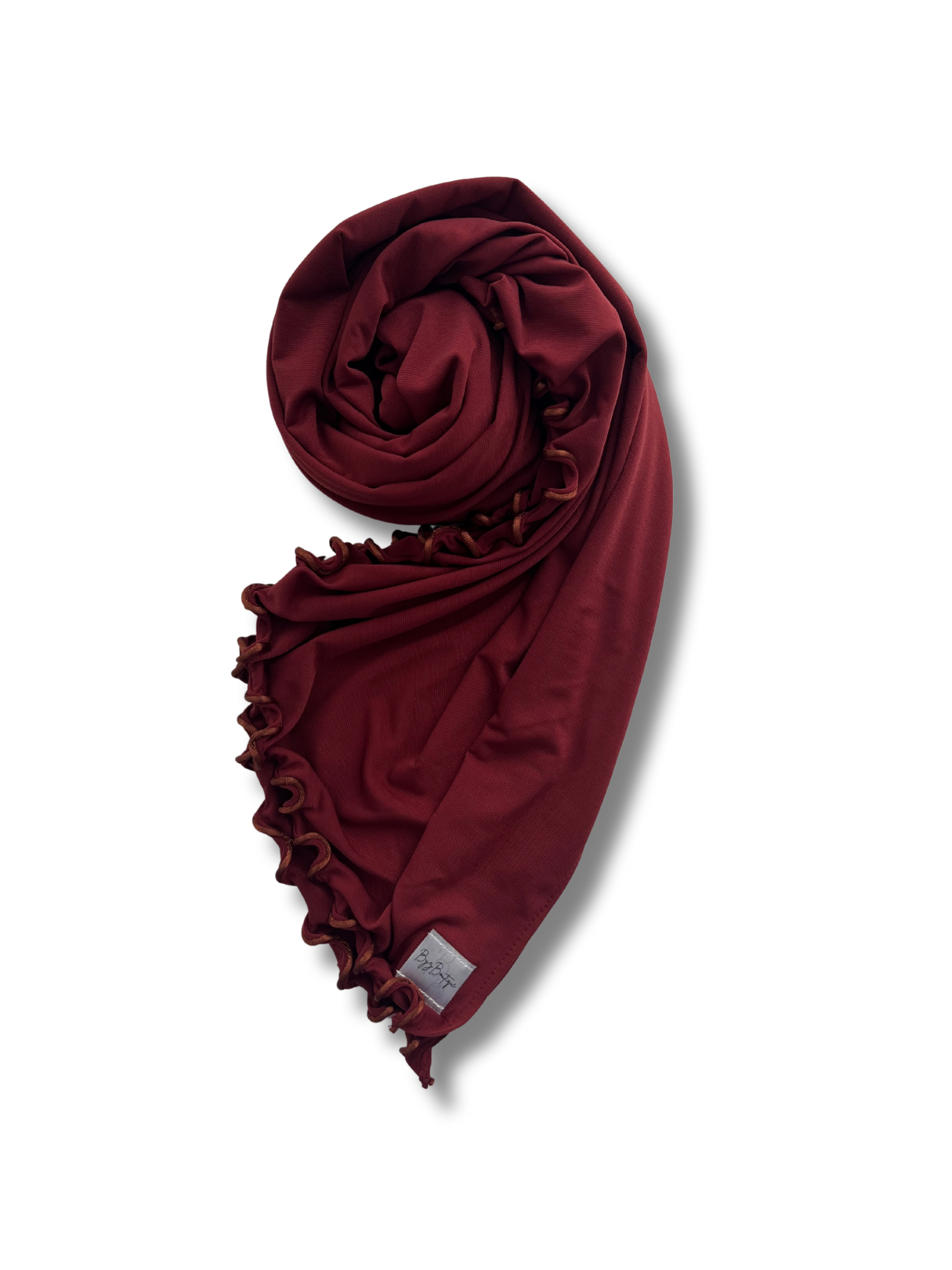 This is the "line" version of our Premium jersey hijab. Meaning the edges contain a wavy satin cord. This makes your daily outfit stand out, making it more chique and appealing to the eye.