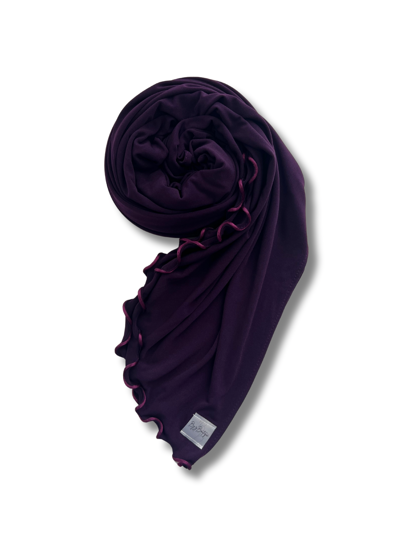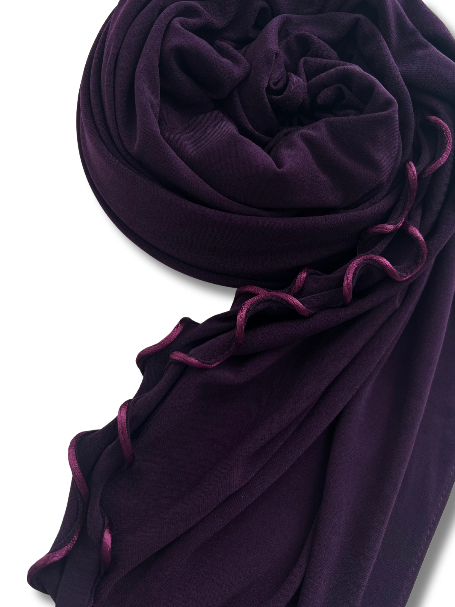 This is the "line" version of our Premium jersey hijab. Meaning the edges contain a wavy satin cord. This makes your daily outfit stand out, making it more chique and appealing to the eye.