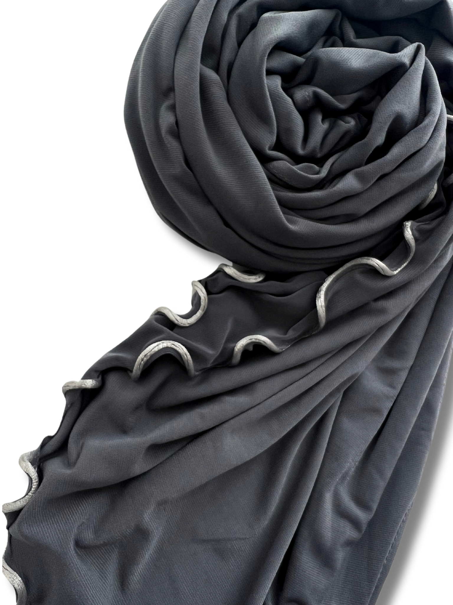 This is the "line" version of our Premium jersey hijab. Meaning the edges contain a wavy satin cord. This makes your daily outfit stand out, making it more chique and appealing to the eye.