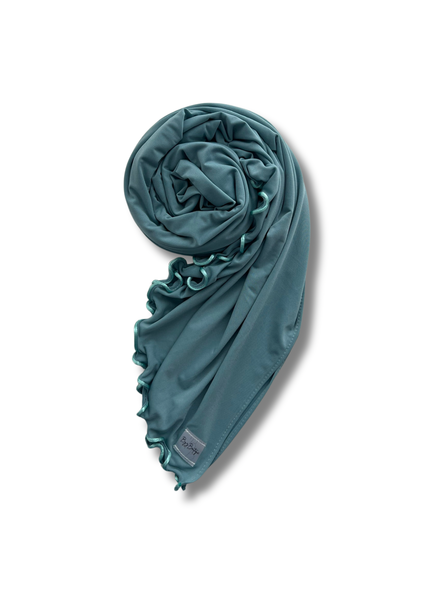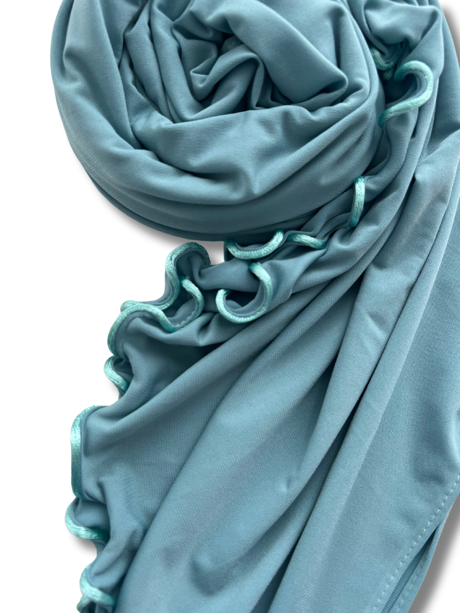 This is the "line" version of our Premium jersey hijab. Meaning the edges contain a wavy satin cord. This makes your daily outfit stand out, making it more chique and appealing to the eye.