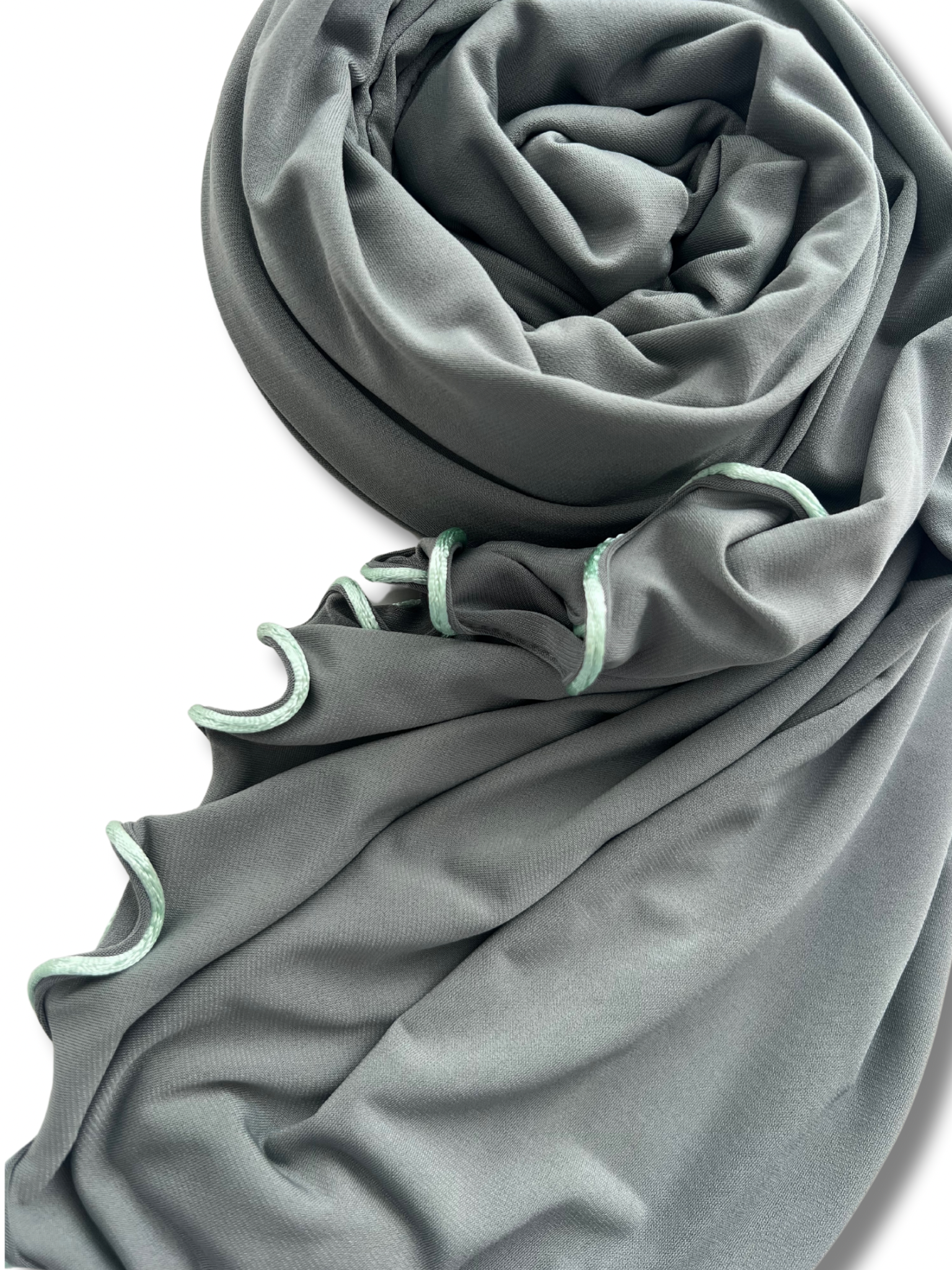 This is the "line" version of our Premium jersey hijab. Meaning the edges contain a wavy satin cord. This makes your daily outfit stand out, making it more chique and appealing to the eye.