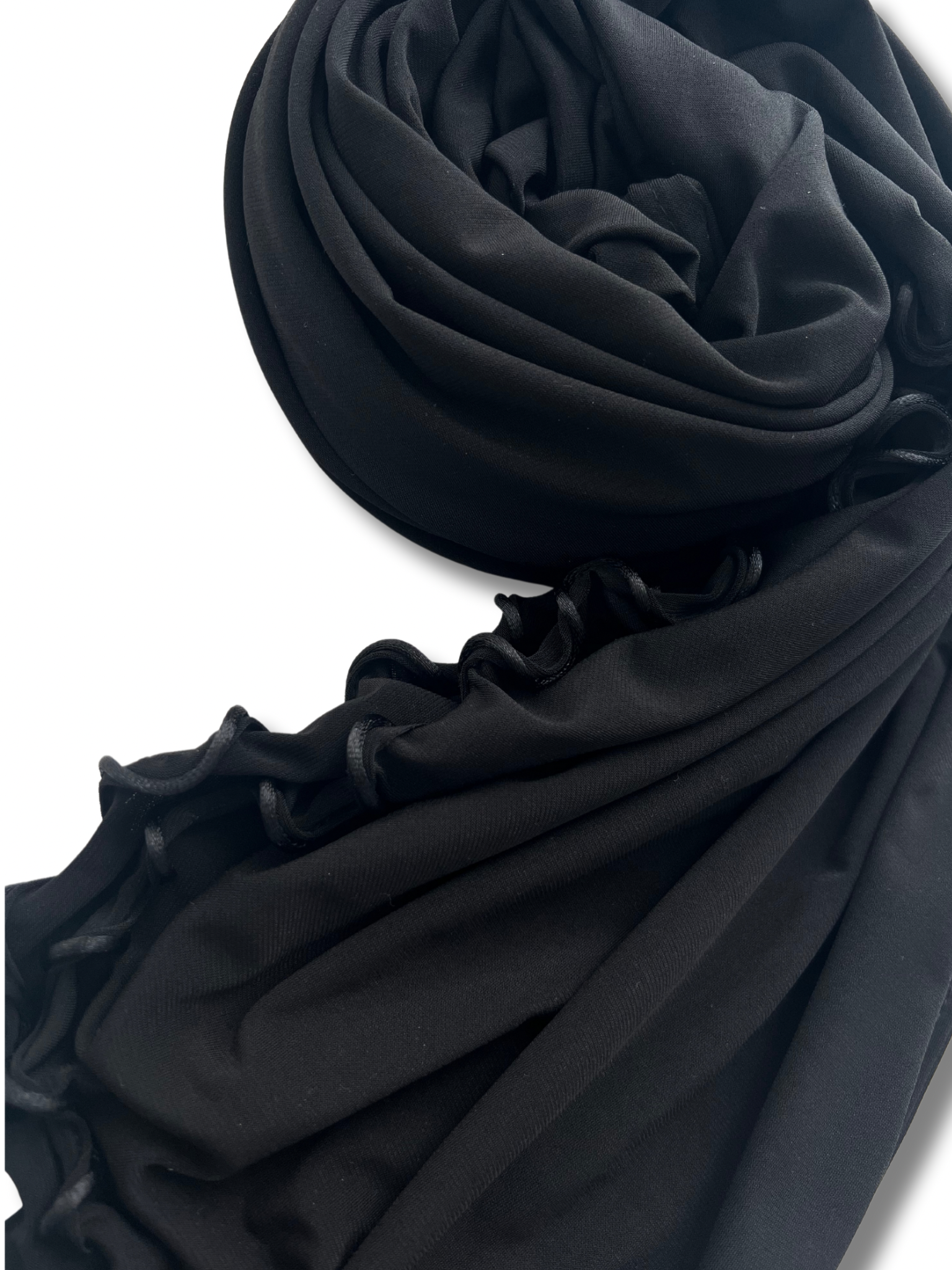 This is the "line" version of our Premium jersey hijab. Meaning the edges contain a wavy satin cord. This makes your daily outfit stand out, making it more chique and appealing to the eye.