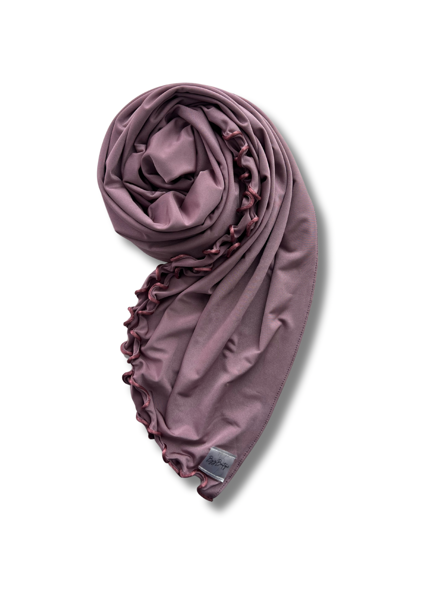 This is the Satin version of our Premium jersey hijabs, which has the same trusted quality, just a different fabric. The satin version has a luxurious appearance making it the perfect choice for special occasions or just for daily wear. This is the "line" version of our Premium jersey hijab. Meaning the edges contain a wavy satin cord. This makes your daily outfit stand out, making it more chique and appealing to the eye.
