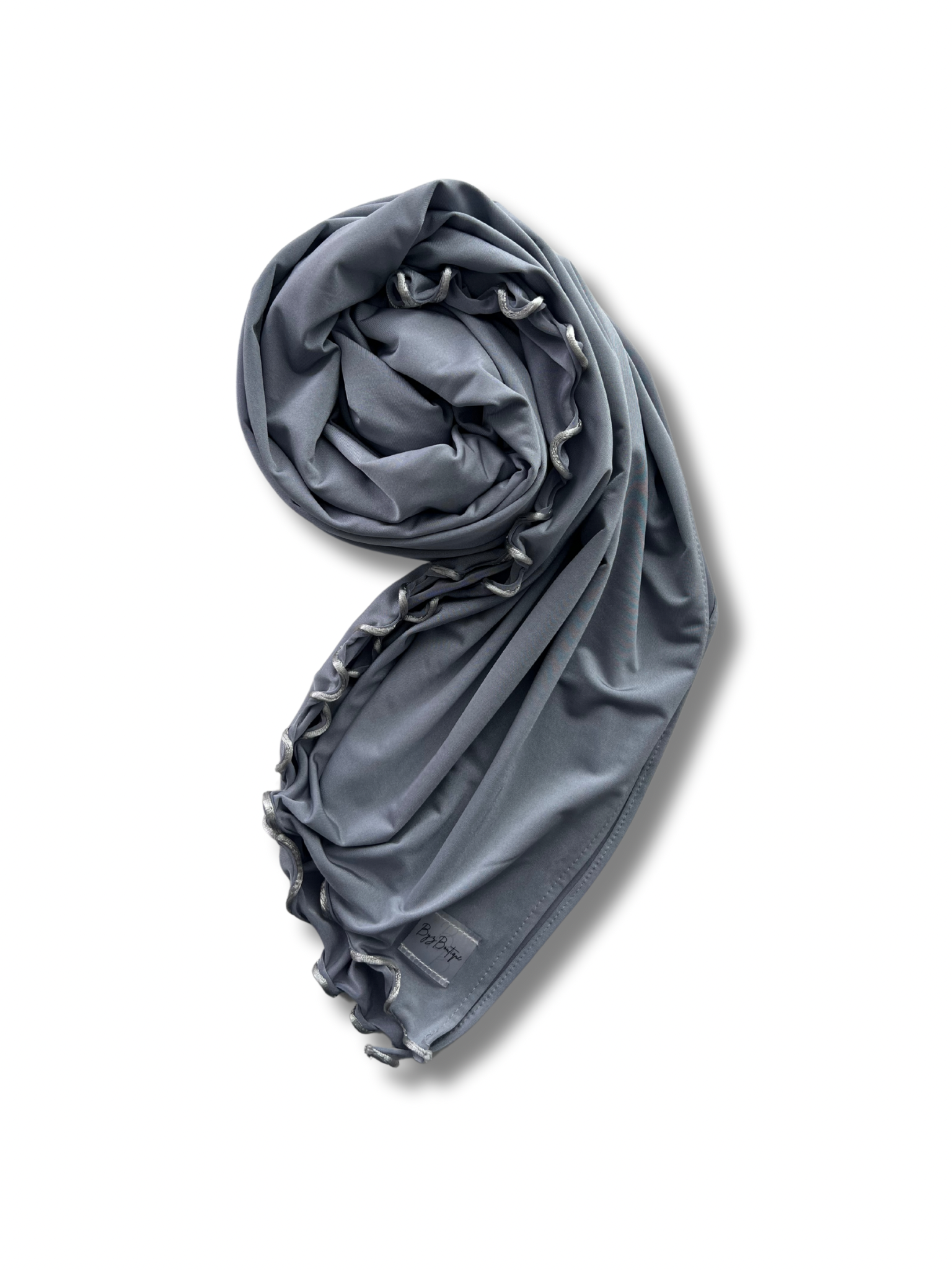 This is the Satin version of our Premium jersey hijabs, which has the same trusted quality, just a different fabric. The satin version has a luxurious appearance making it the perfect choice for special occasions or just for daily wear. This is the "line" version of our Premium jersey hijab. Meaning the edges contain a wavy satin cord. This makes your daily outfit stand out, making it more chique and appealing to the eye.
